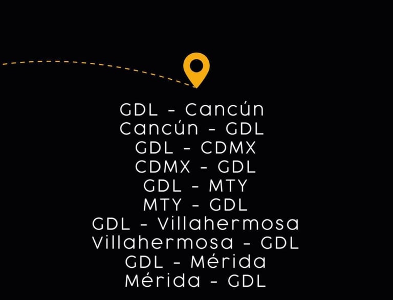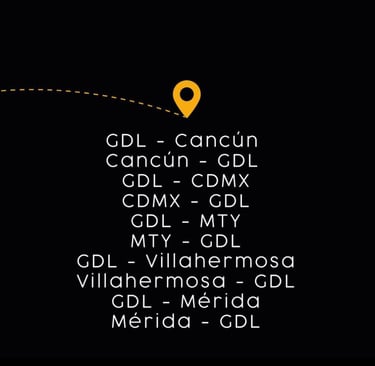 Descubre nuestras rutas a CDMX, GDL, Monterrey, Cancún, Merida, Villahermosa y Puerto Vallarta.